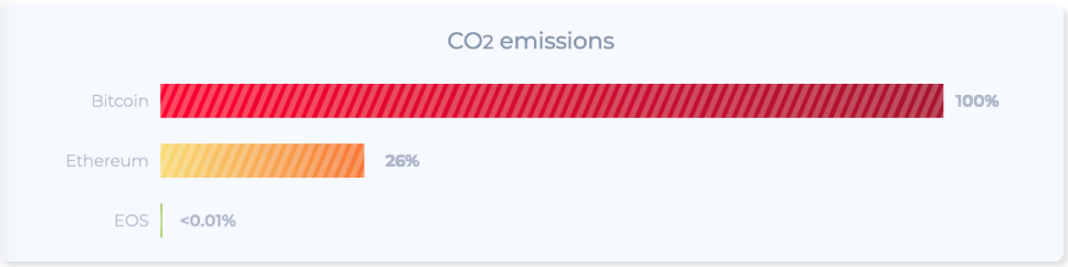 EOS는 비트코인이 배출하는 양의 0.01% 보다도 더 적은 탄소를 배출합니다.