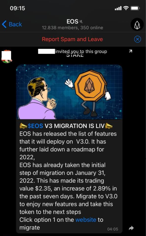 이오스 v3로 업그레이드를 빙자하여 특정 웹사이트로 리디렉션 하려는 게시물들이 종종 눈에 띄고 있습니다.