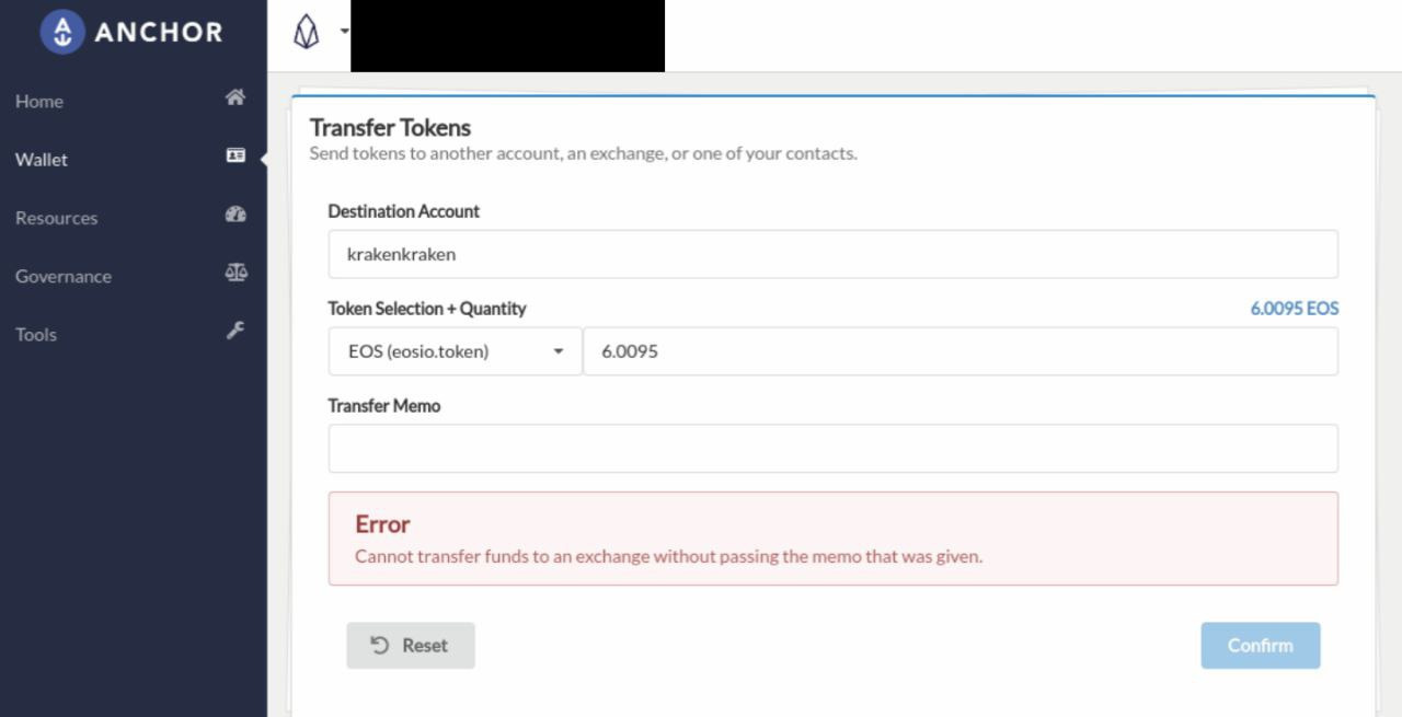 크라켄 및 대부분 중앙화 거래소는 이오스 네트워크를 사용하는 고객 구분을 위해 개인 식별 번호가 포함된 메모를 사용합니다.