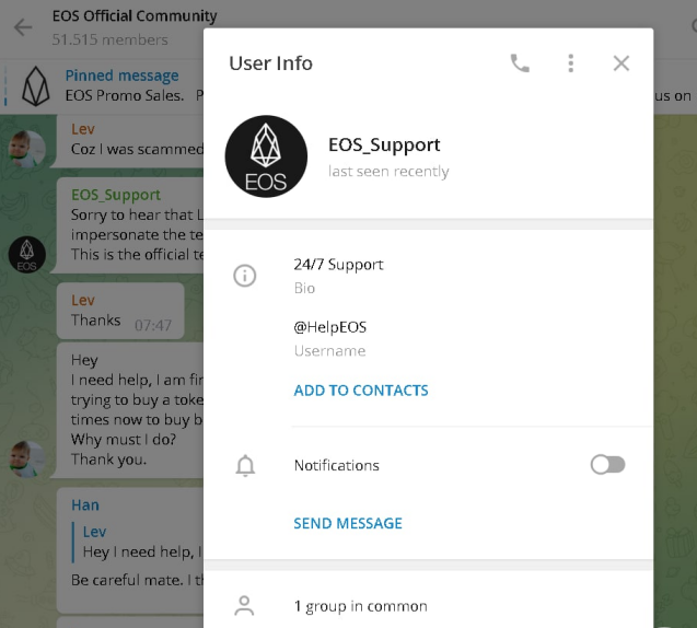 텔레그램 아이디 "@HelpEOS"는 사기꾼입니다!