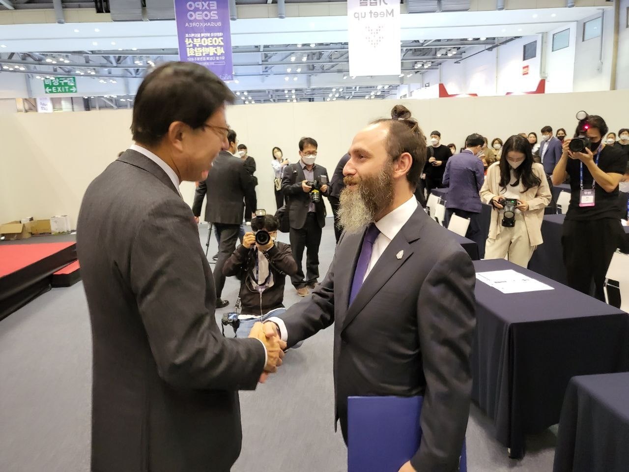 - Picture of Yves la Rose and Busan Mayor (Twitter)