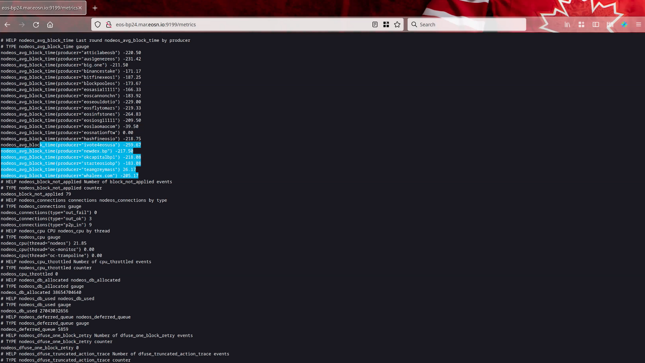 이오스 네이션(EOS Nation)의 매튜 다윈(Matthew Darwin)은 nodEOS가 마치 블랙박스와 같고 노드 운영자가 내부에서 무슨 일이 일어나고 있는지 알기 어려운 것에 대한 논의 필요성을 제시했습니다. 해당 프로세스를 더 잘 이해하기 위한 관련 통계가 필요하고, 회의 참석자는 프로메테우스 익스포터가 제공해야 하는 통계 목록을 제시하기로 합의되었습니다.